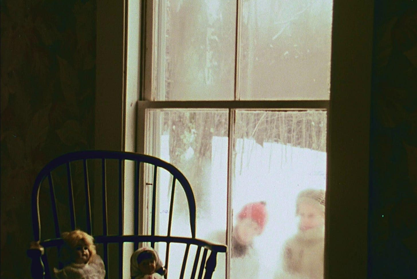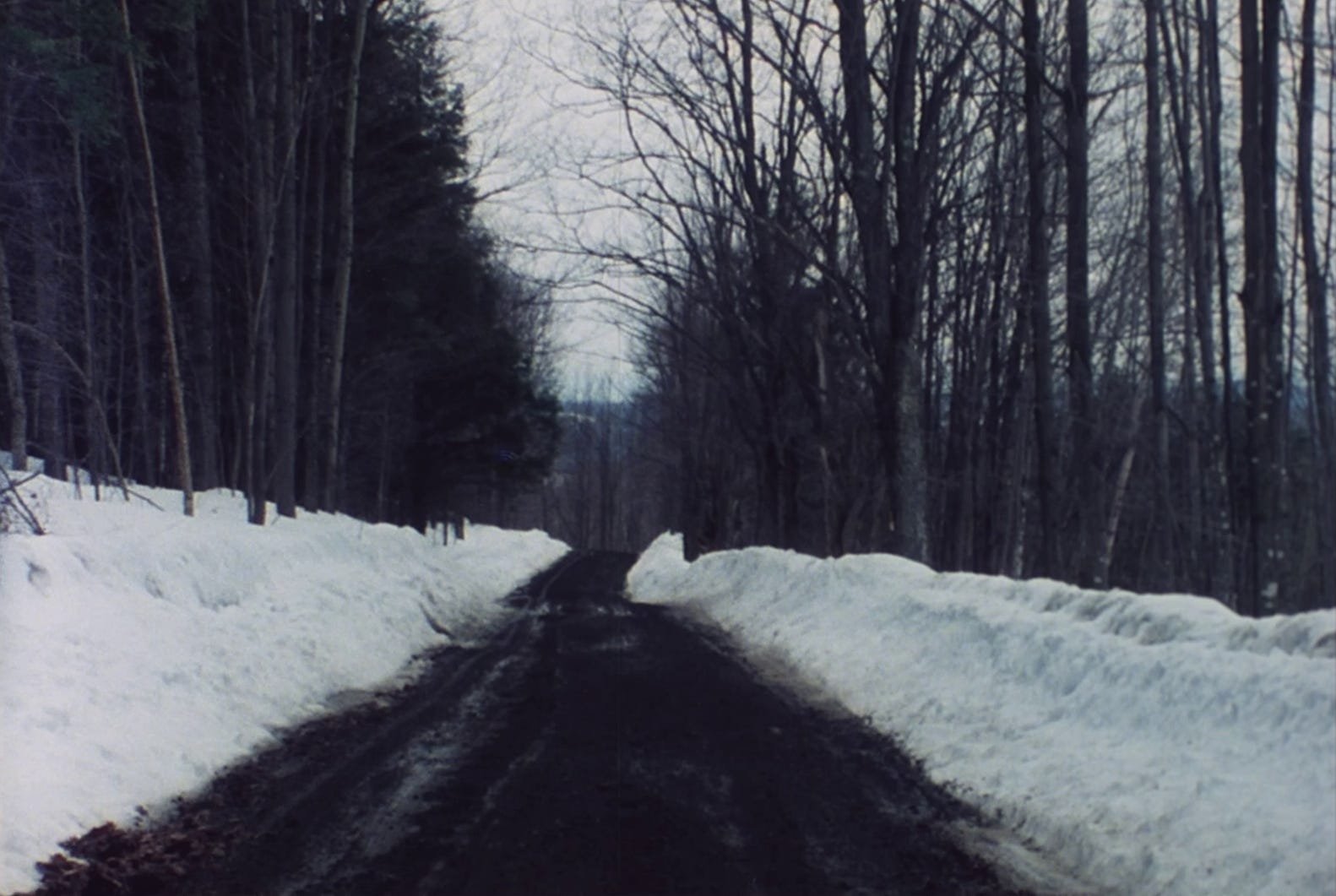 What would you make of a synopsis like this? It seems to raise more questions than it answers. How can an old woman calling away some children be an important enough event in a feature film that it warrants mention in the capsule summary? What about this New England landscape could be “supernatural?” I didn’t watch the film right away, not for the aforementioned several years, in fact, but I made a note of it, put it on the ever-lengthening watchlist, and the sheer oddness of this brief paragraph meant the thing kept resurfacing in my memory every few months, a puzzle I just couldn’t solve. Having now seen it, I can say that I’m skeptical there’s anything “supernatural” about the film’s landscape. That seems more like an attempt to avoid thinking about how strange the world really is, how full of secrets. On the other hand, I would agree that yes, the old woman’s call is important enough to warrant mention, although I find it hard to quite explain why, except, perhaps, by saying that in a film with as few characters as this one, every appearance of a new face seems important, especially appearing where the old woman does, outside this farmhouse, which does seem very remote, at the end of a long gravel track, and which is surrounded by drifts of soft, heavy snow, such that it’s hard to imagine anyone finding themselves there without a very definite purpose. We understand what the couple are doing there, they’ve come for the week, or the weekend, or something like that, get out of “the city” (they seem like people who live in a city, usually), do some cross-country skiing, probably try to resolve some simmering relationship problems. We can imagine, too, how the kids could have gotten out there, remote as it is; there must be other farmhouses somewhere around, and kids love to roam, especially kids living in places as rural as this, where there’s nothing better to do (and, indeed, what could be better to do, as a child, than to spend all day exploring in the woods, that vast and secret kingdom?) – but the old woman wouldn’t just have been “roaming,” so why was she right there, out in the yard? Where did she come from? How? And, again, why? And that call – what a strange, trilling, backwoods call, almost like a bird, but more formal somehow, almost ritualistic. Strange things have already been happening, strange footprints in the snow, animal tracks that cross the trails and go off through the thick of the woodland towards nowhere. It is strange, also, that the children have been there at all, have been there more than once, it is strange that they do not seem shy, or uncomprehending, yet refuse to speak to the woman (it is only the woman who tries to speak to them; it is uncertain if the man ever sees them at all, if they would even allow themselves to be seen by him). But it is only after this call, after the children heed it and run away, leaving the couple to themselves, alone with themselves, themselves and the woods, that these strangeness become serious, become mysteries with consequences, with stakes attached.