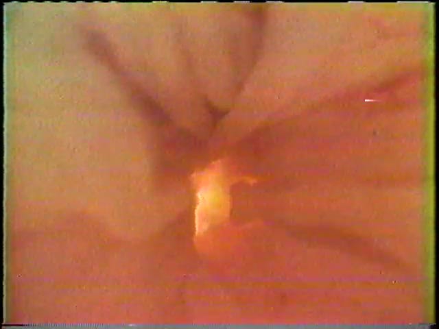In Highway Hypnosis, the Freeway Killer goes for a drive. He drives from Los Angeles to Las Vegas. He meets a young man there and he kills him (off-screen; at first, we think that he’s sleeping, or pretending to sleep). Then he drives back from Las Vegas to Los Angeles. That’s it. Most of the movie is shots of him behind the wheel, driving, or shots out the passenger window, or looking through the windshield, watching the road ahead. The video camera that shoots all this (because this is a shot on video movie) is handheld, and often unsteadily. In 1984, these things would still be pretty heavy, pretty bulky, hard to handle. It awkwardly tracks people waving out of passing busses, or wheels around to catch a woman getting out of a sports car while the Freeway Killer is parked in Las Vegas, reading a roadmap. We get a small sense of his home life, but only a small sense: peering through the blinds at his neighbors, sitting in a camping chair in an otherwise-unfurnished room, watching TV, drinking a beer, just wearing underwear. Cars on the TV, music, whatever. It doesn’t make a difference. Classic going-nowhere bachelor life, more than a little reminiscent of another character study of a boring loser serial killer from the period, the very underrated Murderlust (1987). But where that film stayed grounded in the mundane grind of its schlubby misogynist killer’s shitty life, Highway Hypnosis is an altogether more elusive, metaphysical prospect. I’ve just implicitly described it as a character study, but it would maybe be more accurate to say this is a character embodiment, an attempt to put us into a particular headspace in a very direct fashion. There’s no explanations here, no “insights” per se – what there is instead is shot after shot of cars, buildings, mountains on the horizon, the road stretching away ahead, baking under the indifferent sun. Then, sometimes, there will be something else, a sound, an image, a flash of light. There will be something wrong, something different, bad, blood poured down a drain, the teeth of a saw digging into an arm, what seems like the inside of a womb, or a rectum. These things never last for too long, they never get literal enough to resolve into anything definite. And then it’s the road again, the cars, the desert, a park, a casino, ordinary places, nothing going on, nothing to see, a jogger runs past, an old woman takes on last drag of a cigarette before she gets on the bus. Inside the mind of the Freeway Killer, the movie’s Freeway Killer, that is, to be clear, who can say about the real ones, probably no one, probably not even God, but for this Freeway Killer there’s some relationship between these things, the one feeds into the other, the other feeds into the one, they aren’t separable, they aren’t even different, they’re both the same thing, which we know even though his face remains impassive, because we’re not really looking at his face, we’re behind his face, we’re inside of him, he’s inside of us. Then the movie’s over, and we snap out of it, and we wonder why we ever thought such a thing. But of course, this is how hypnosis works. What’s unnatural will suddenly seem like the most natural thing in the world. The same principle lies behind prayer.