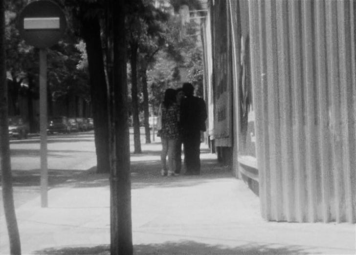 Contactos was directed by a man named Paulino Viota, who was self-taught as a filmmaker. This was his first feature. This information, like the information that it was produced clandestinely, clarifies much about the film, about the form that it takes, which is not crude so much as direct, elemental, composed according to a grammar of its own invention, optimized for its own purposes. It’s not in any sense a “naive” work – Viota is aware of the conventions of the bourgeois cinema, and he’s aware of the ways those conventions have been challenged in then-recent years; it’s just that here, all of that is more or less beside the point. To simply make this film, under the conditions it was made, is to perform an act of subversion in comparison to which any essentially aesthetic one appears trivial – it is not that the film is not formally daring, it is, it is singular even, but rather, how could it not be? The aforementioned conventions cannot accommodate a work like this; it is not what they were built for, it is not part of their lexicon. The film must break with them out of necessity; there is no other way it can make itself legible. Put simply, it takes the form it does because this is the form it must take, the only form it can take.